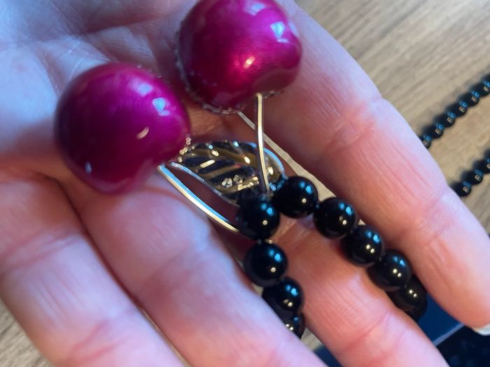 Grand collier sautoir cerise et perle Noir Swarovski - photo numéro 8