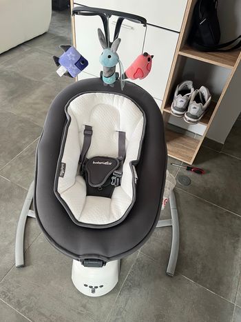 Balançoire de la marque 4moms pour bébé en excellent état voir neuf. Possède plusieurs modes de mouvement, inclus également la possibilité de mettre de la musique en Bluetooth, ou via directement celle de la balançoire en elle-même. Le tissu est très simple à retirer et à nettoyer. Prix d’achat 260 €.