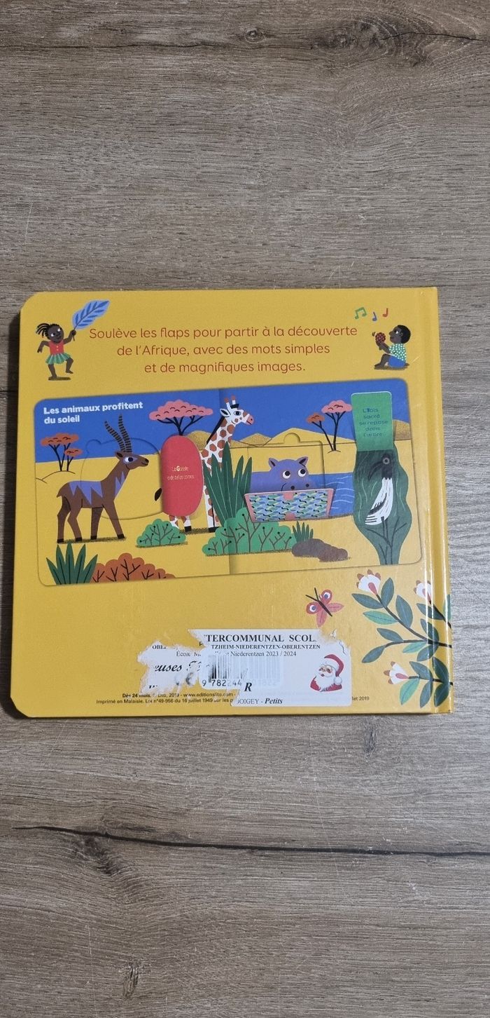 Livre : Abécédaire d'Afrique avec volets à soulever Éditions Lito Neuf (étiquette collée sur la couverture arrière)