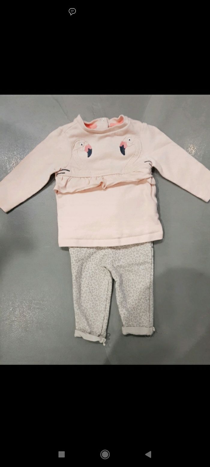 Taille 6mois décors Flamant rose Et pantalon motif léopard marque orchestra Très bonne état