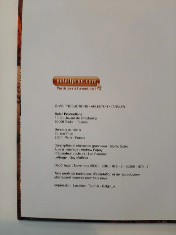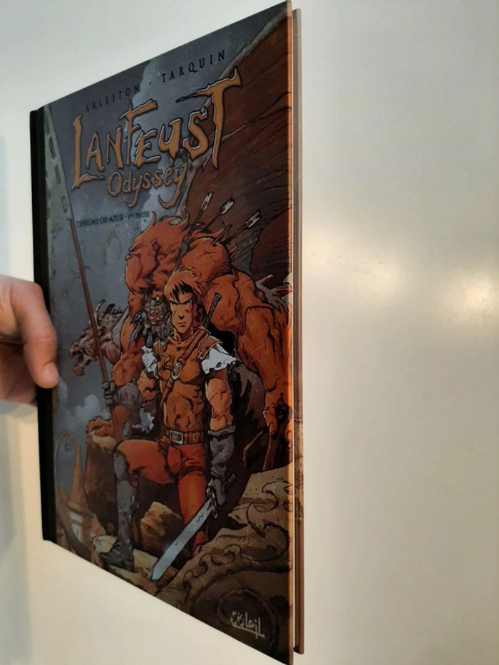Tome 1 de la série Lanfeust Odyssey: "L'énigme Or-Azur - première partie", 65 planches en couleur, album en très bon état. Édition limitée à 500 exemplaires réservée aux libraires (non numérotée) avec dos toilé, publié en novembre 2009 comme l'édition originale (EO). Tirage unique! Scénario de Scotch Arleston (Christophe Pelinq), dessins de Didier Tarquin, couleurs de Frédéric Besson, Lettrage de Guy Mathias - 2009 Soleil Production.