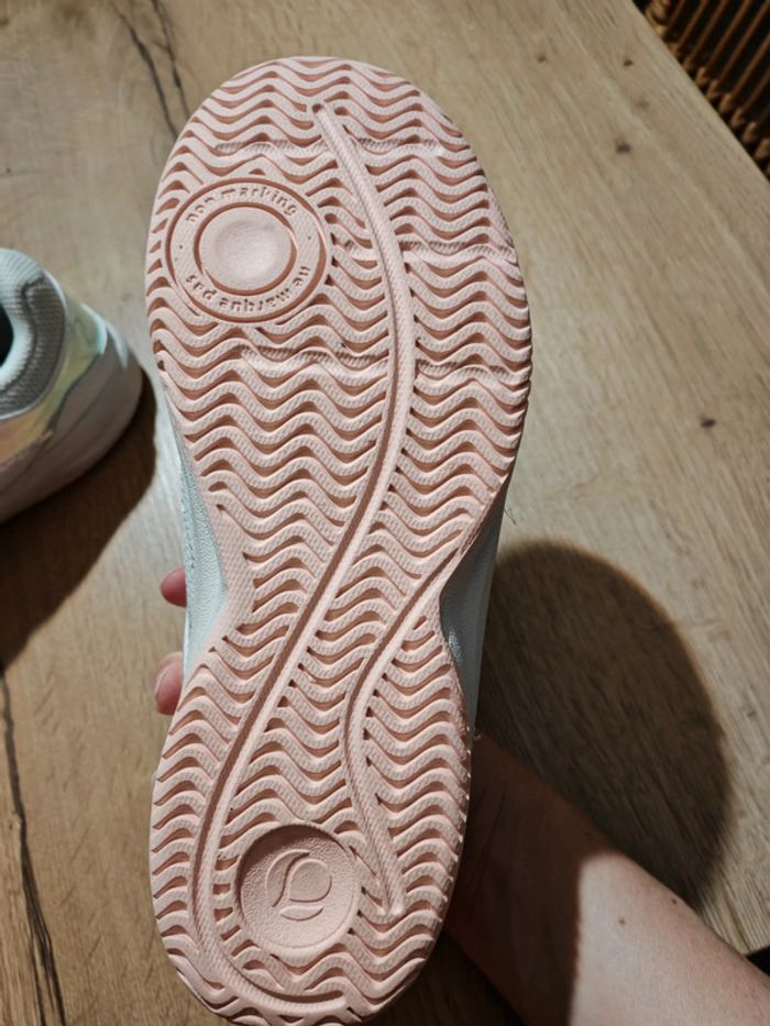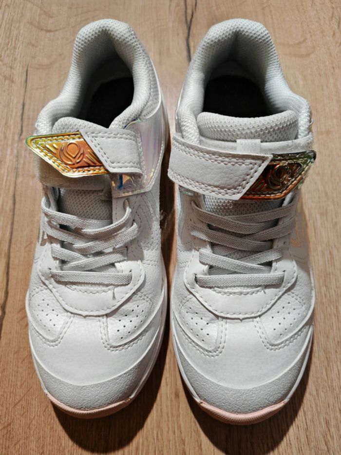 Basket en excellent état, très peu portées. Portées exclusivement en salle de sport. Semelle qui ne marque pas les sols des gymnase. Taille 34