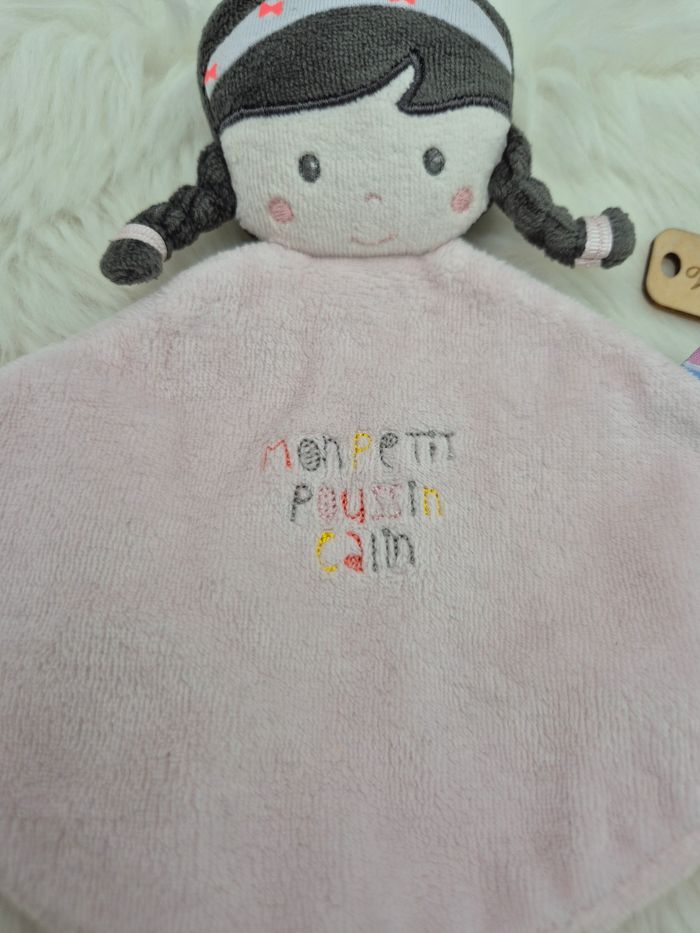 Doudou plat Poupée Fille Rose Nattes Mon Petit Poussin Câlin Brune Sucre D'orge - photo numéro 1