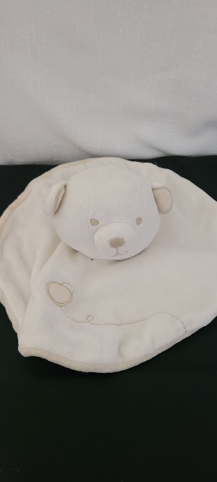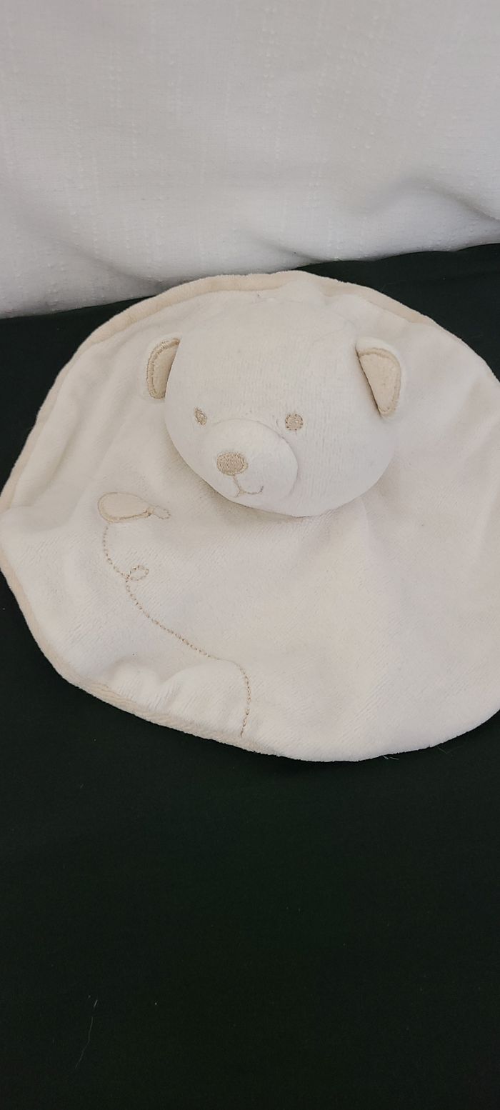 SUCRE D'ORGE Doudou plat ours blanc beige rond - photo numéro 2