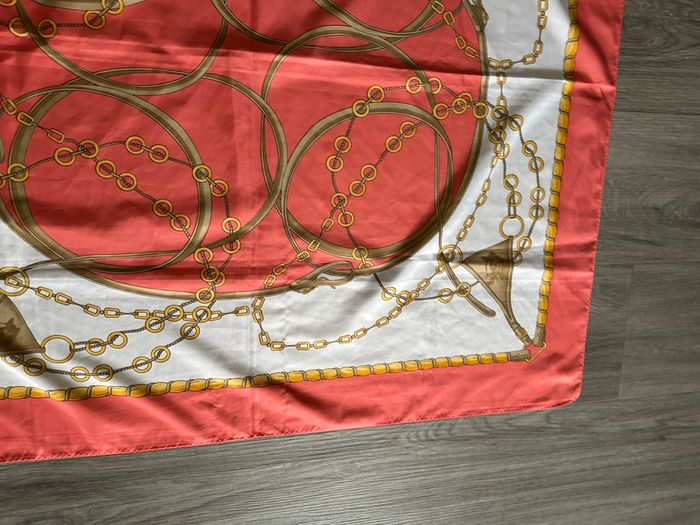 Foulard étole cheval équestre équitation orange corail doré et blanc Vintage 85x85cm - photo numéro 7