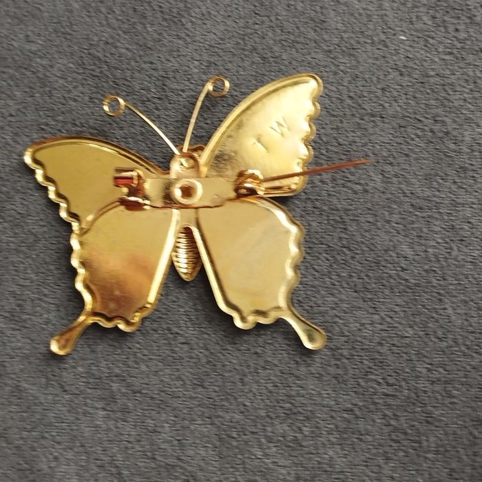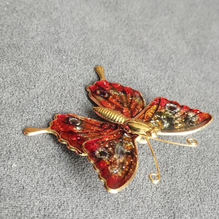 Broche papillon émaillé coloré rouge orangé.. Monté sur doré. attache épingle. 4cm