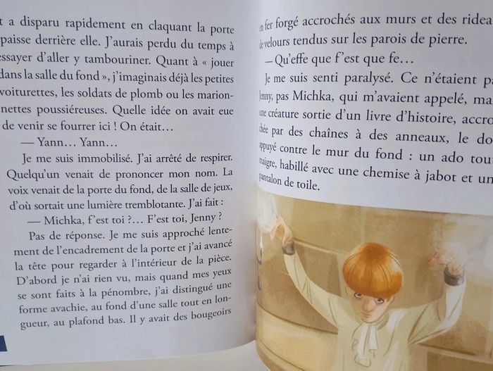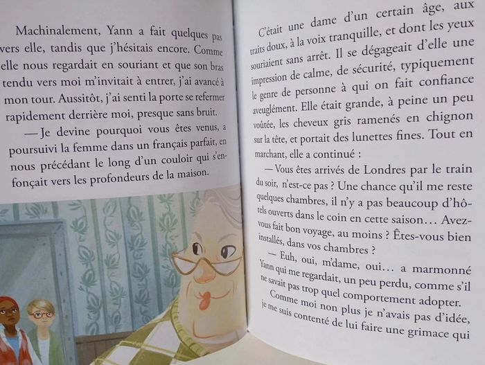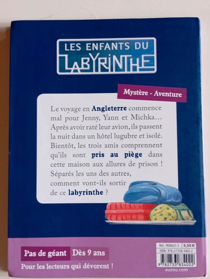 Le voyage linguistique commençait mal pour Yann, Jenny et Michka... Après avoir raté l'avion qui les emmenait en Angleterre, ils arrivent seuls dans un hôtel perdu où ils doivent passer la nuit. Très vite, ils réalisent que quelque chose ne tourne pas rond et vont se retrouver aux mains de la propriétaire de l'hôtel qui les emprisonne... Éditeur ‏ : ‎Auzou 94 pages Âge de lecture ‏ : ‎ 8 - 10 ans Dimensions ‏ : ‎ 13.8 x 0.8 x 18.7 cm Livre en très bon état Je vends d'autres livres de la même collection #phil_peg_auzoupasdegéant #angleterre #voyage #hotel