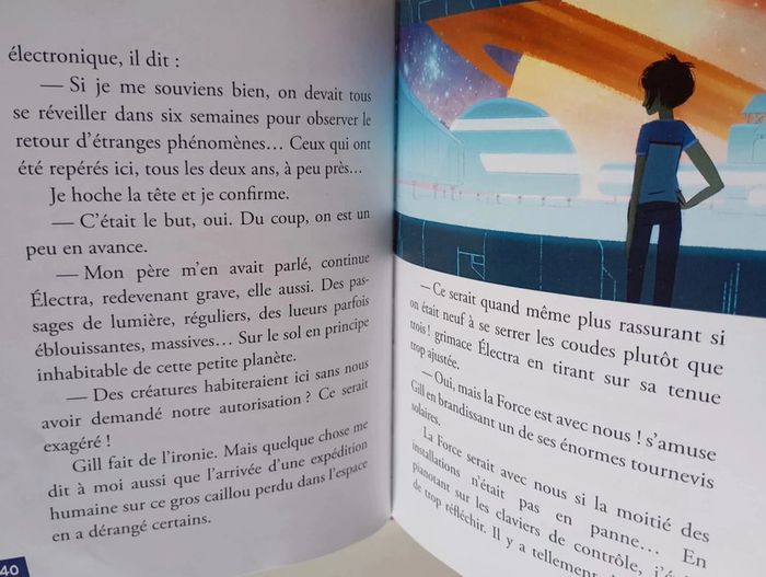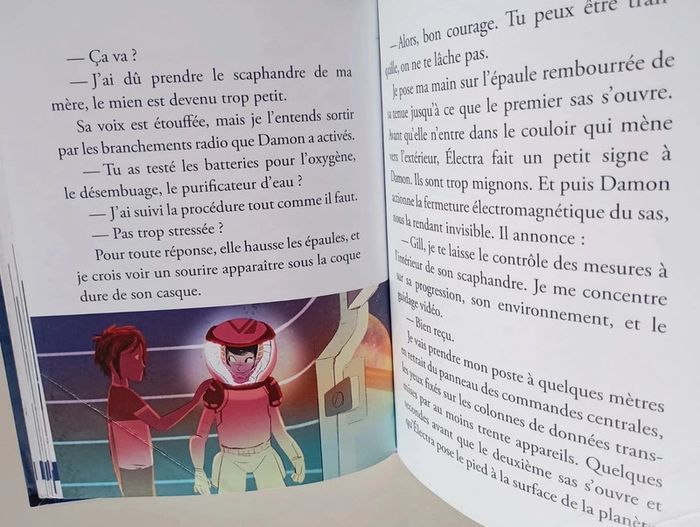 Electra, Damon et Gill se réveillent à bord de leur vaisseau spatial à destination de Saturne. Seul problème : leurs parents sont plongés dans un sommeil profond et les enfants sont livrés à eux-même. Lorsqu'un pilône menace de s'écrouler sur la planète hostile, ils vont devoir agir, et vite ! D'autant qu'une présence mystérieuse semble les observer... Éditeur ‏ : ‎Auzou 98 pages Âge de lecture ‏ : ‎ 8 - 10 ans Dimensions ‏ : ‎ 13.8 x 0.8 x 18.7 cm Livre en bon état Je vends d'autres livres de la même collection #phil_peg_auzoupasdegéant #espace #saturne #vaisseauspatial #planète