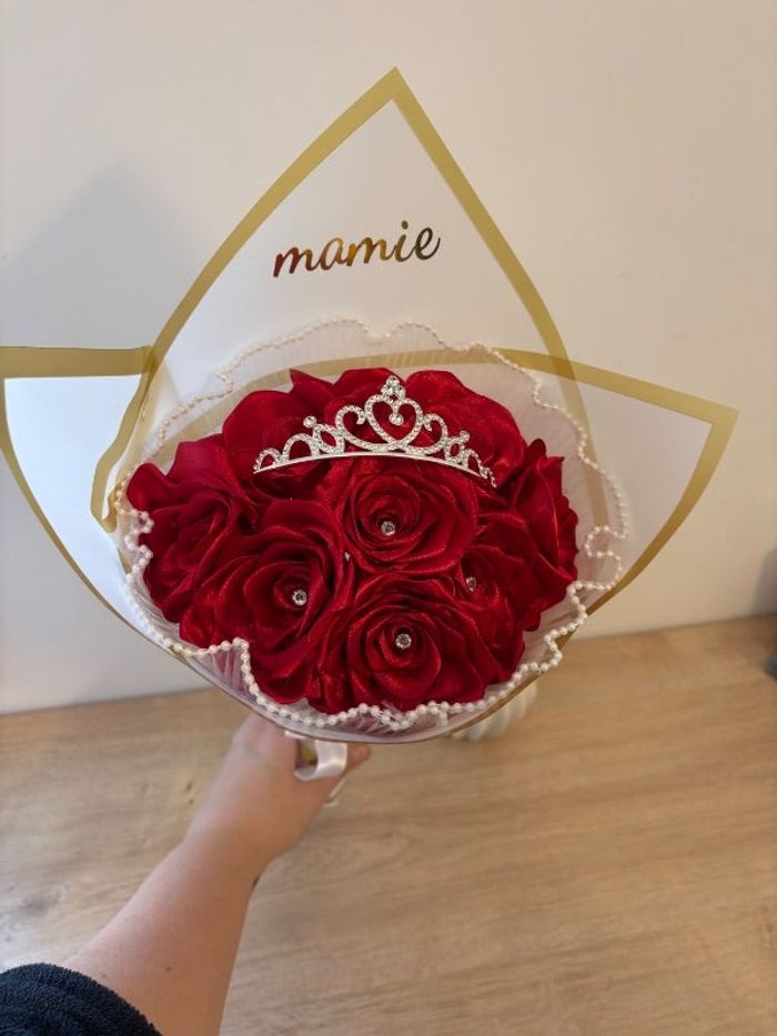 Je vous propose des bouquets en satin de la couleur de votre choix avec les accessoires de votre choix. Le prix varie selon le nombre de fleurs ☺️