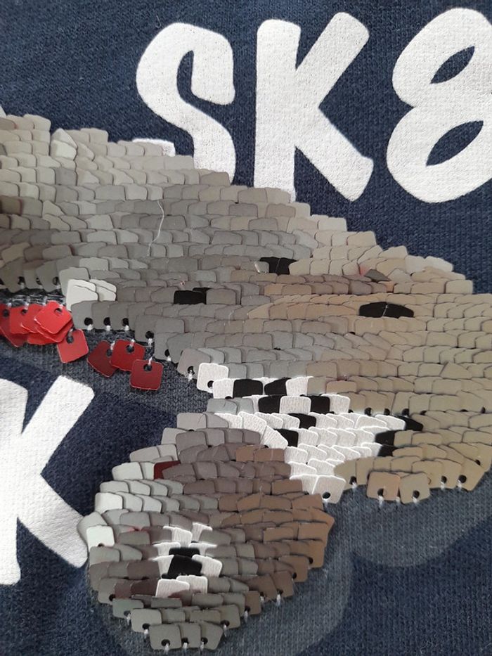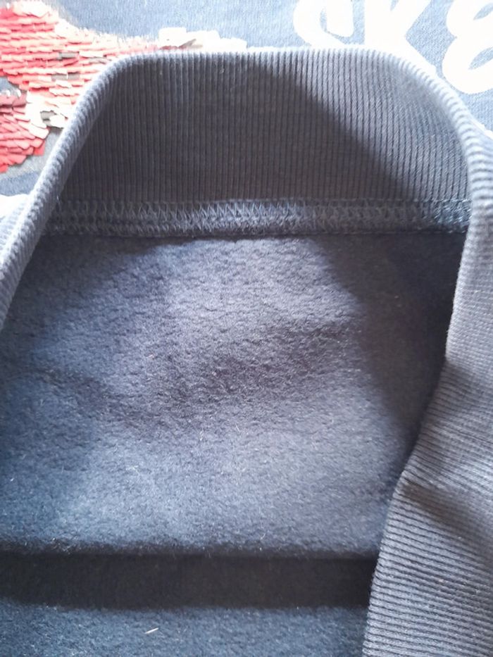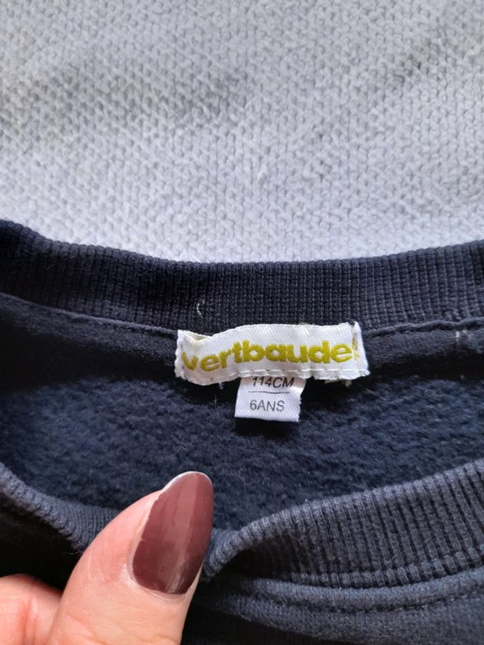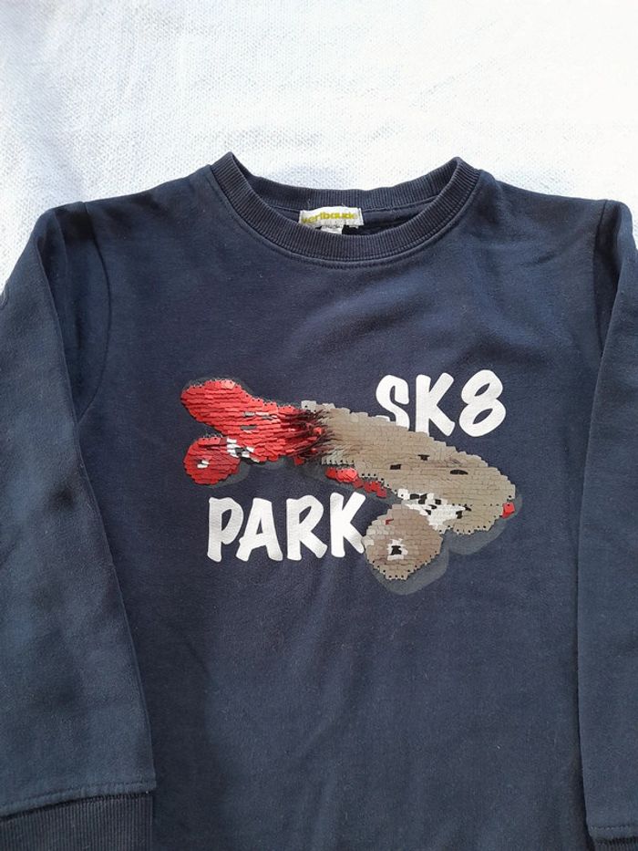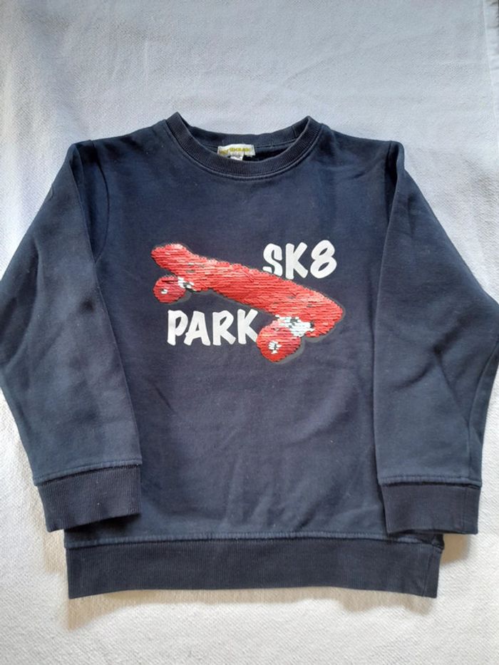Sweat garçon de couleur bleu marine avec logo interactif sur le devant, col rond, manches longues, bon état, propre.