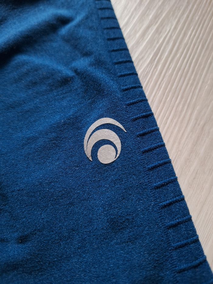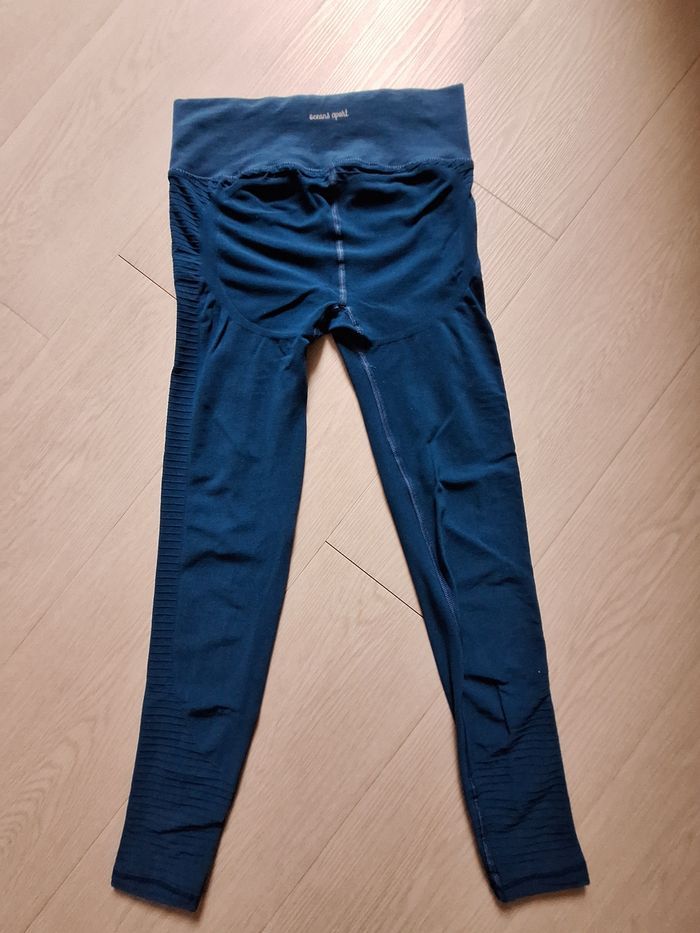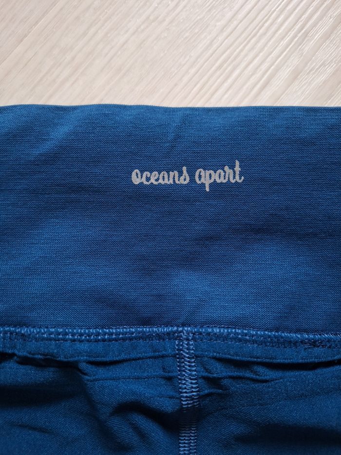 Legging bleu taille haute avec une ceinture souple pour une taille ajustée, petit imprimé OA sur une des jambes, Longueur du legging d'environ 81cm Longueur de la taille d'environ 32cm Matière 88% polyamide et 12% elasthane Porté très peu de fois mais est en très bon état