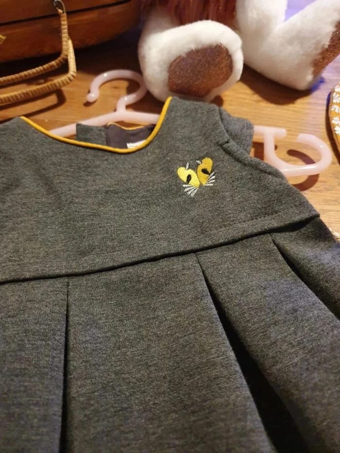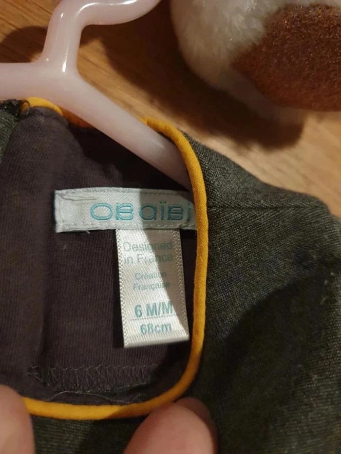Superbe robe épaisse et confortable obaibi grise et moutarde. #dressingelphye6mois