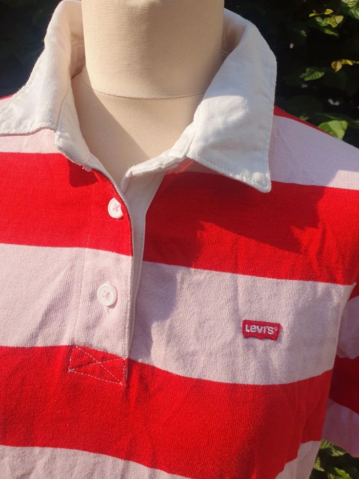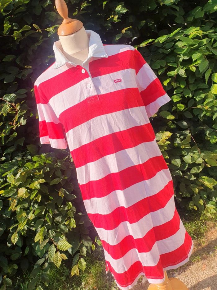 Superbe robe levi's type polo taille M 38 à rayures roses très pâle casi blanche et rouge. Col blanc. #dressingelphye38