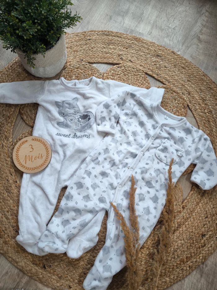 Lot de deux pyjamas mixtes 3 mois motif loup #dressingelphye3mois