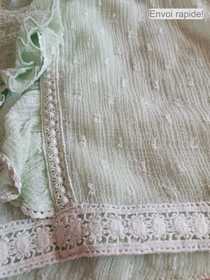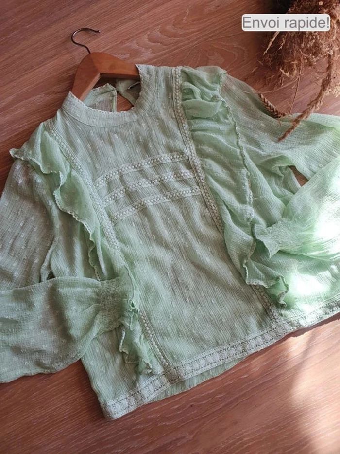 Blouse verte pale manches longue et volant . indiqué 42 mais taille 40 voir même 38. #dressingelphye38 #dressingelphye40
