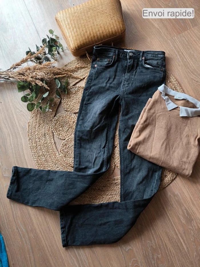 Joli Jean zara taille haute et bas ouvert taille 38 noir délavé #dressingelphye38