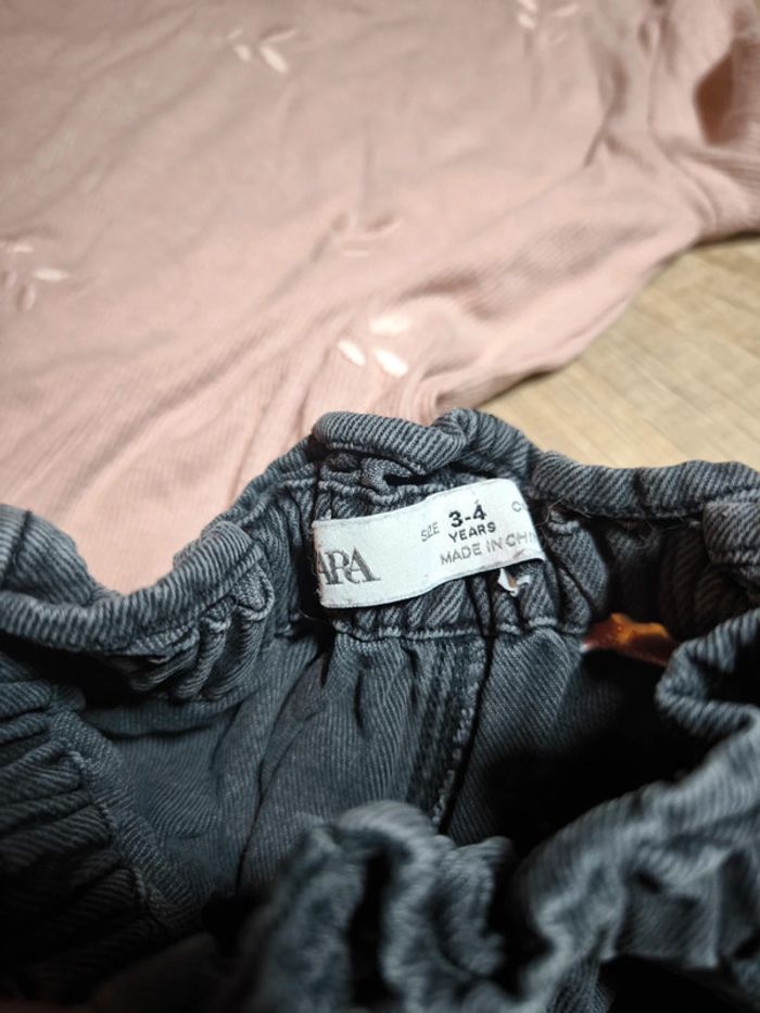 Ensemble Zara 4 ans . T-shirt rose feuillage brodé et jean large taille haute . #dressingelphye4ans