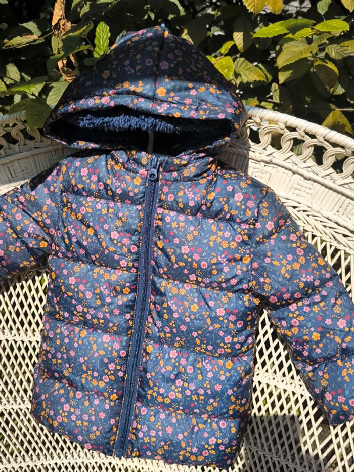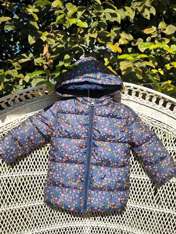 Doudoune très chaude entièrement doublé 9 mois bleu marine et petites fleurs #dressingelphye9mois