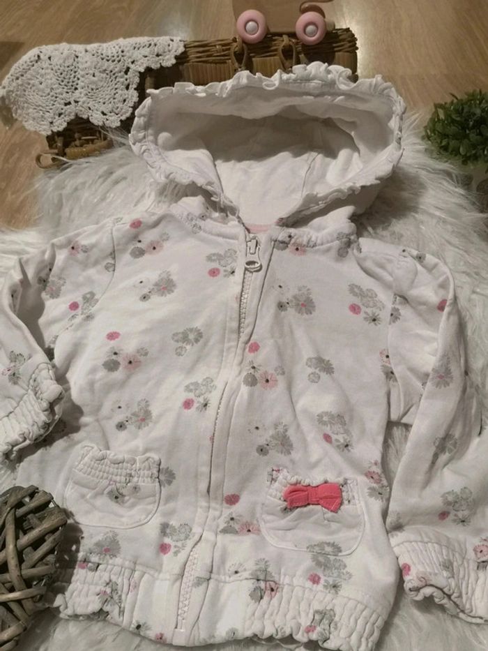 Veste à capuche 12 mois blanche motif fleurs parfait état. #dressingelphye12mois