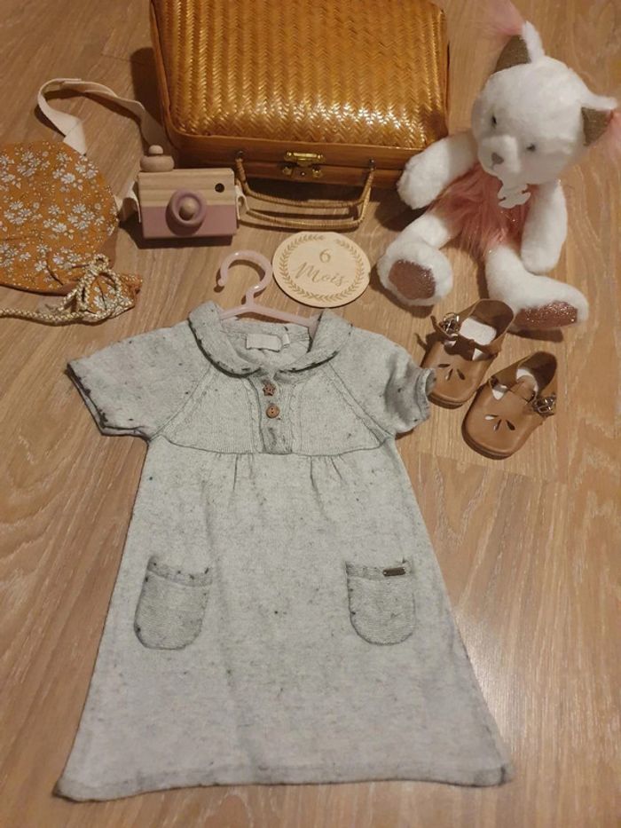 Très jolie robe natalys 6 mois l'effet "bouloche" est d'origine. Il manque un petit bouton en bois voir photo mais ma fille la toujours porté ainsi ça ne gêne pas et ne se voit pas. #dressingelphye6mois