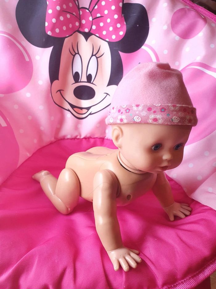 Poupée qui marche a 4 pattes quand on frappe des main devant lui .
