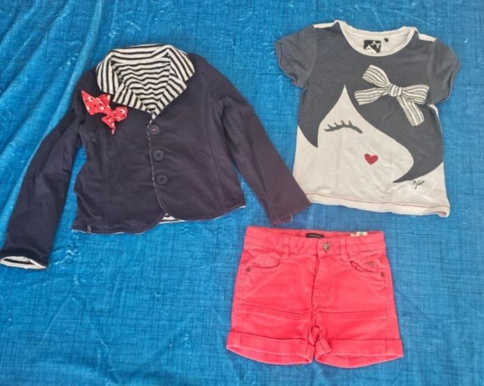 Joli ensemble taille 3 ans compose d un t shirt et d un short de la marque ikks et d une veste réversible de la marque jean bourget . Pour voir tout mon 3 ans tapez dans la barre de recherche #3ansfillelili29217
