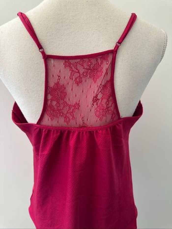 Débardeur satiné rose framboise en dentelle Etam T40 L
