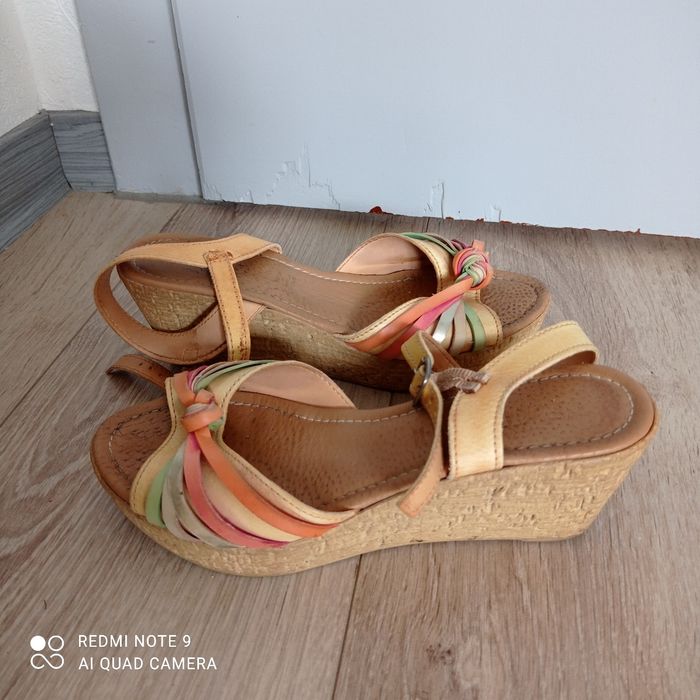 Compensées cuir orange et jaunes P36 - photo numéro 1