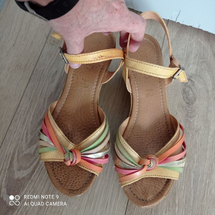 Compensées cuir orange et jaunes P36 - photo numéro 7