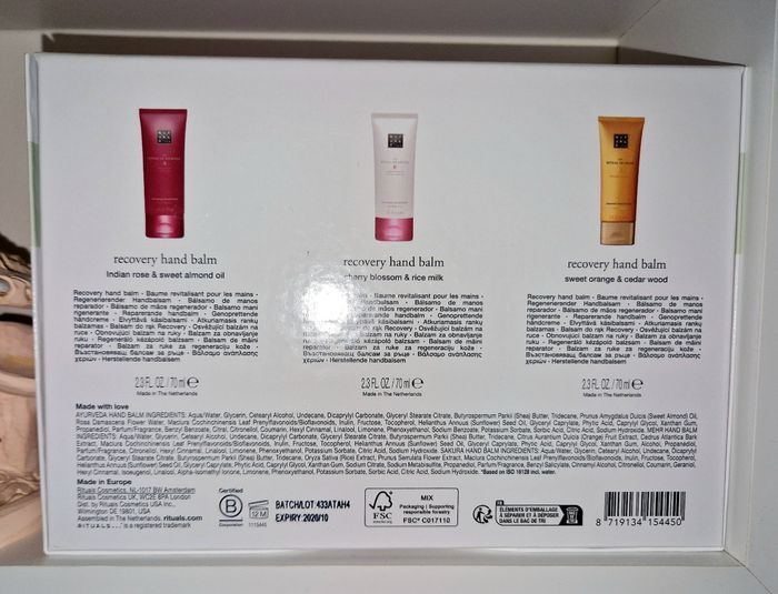 Coffret soins des mains rituals neuf comprenant 3 baumes revitalisant pour les mains de 70 ml chacun, 1 collection ritual of ayurveda+ 1 collection ritual of Sakura+1 collection ritual of mehr.