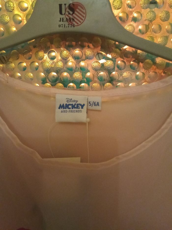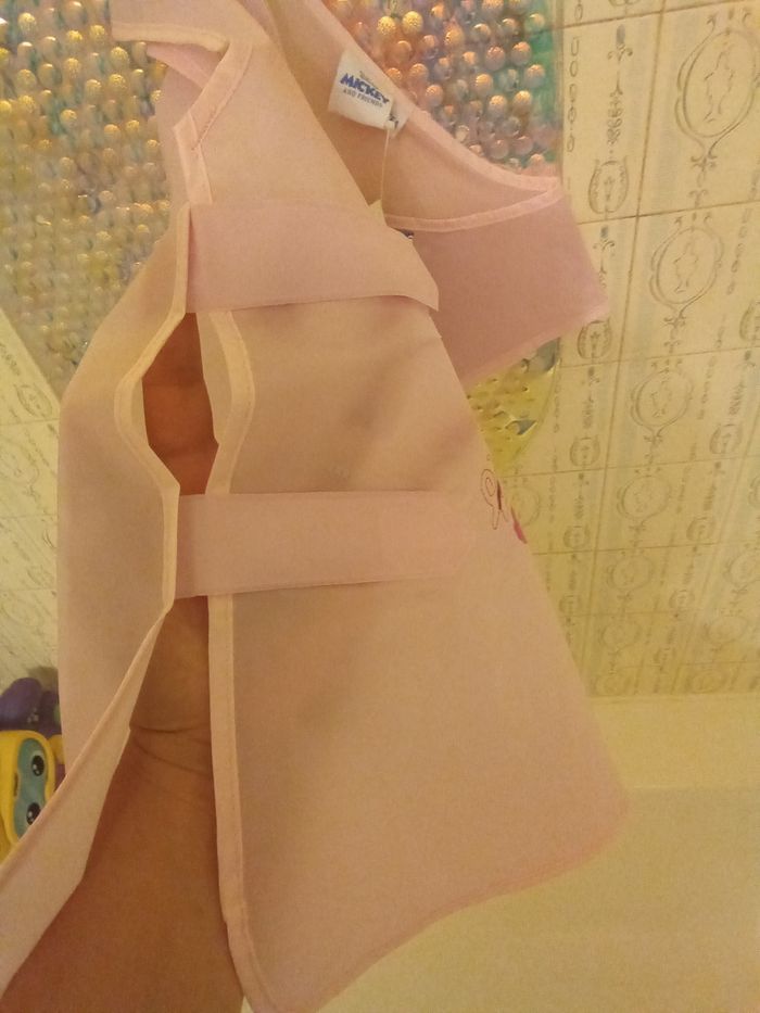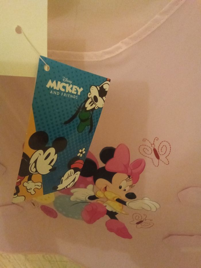Tablier Minnie neuf avec étiquette. Taille 5/6 ans. Attaches scratch sur les côtés. Facile à mettre et a enlever. Étiquette intérieure pour noter le prénom de l'enfant.