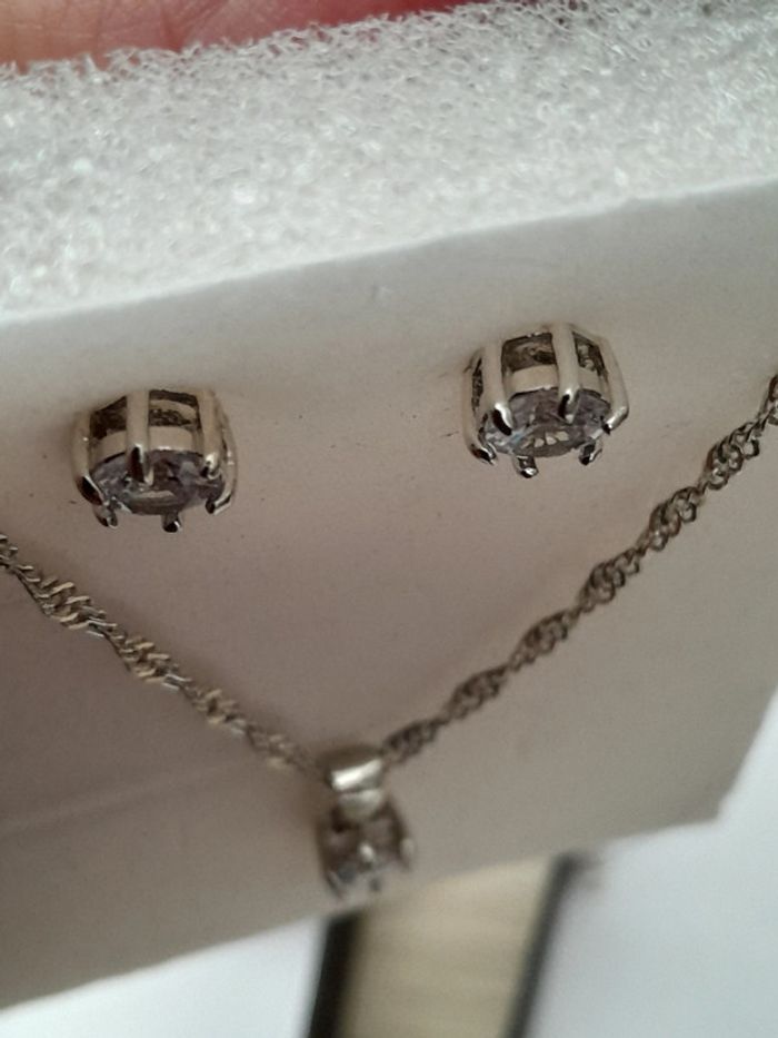 Parure, boucles d'oreilles + collier, argenté acier inoxydable les pierres sont en cristal la chaine du collier mesure :42cm+4cm