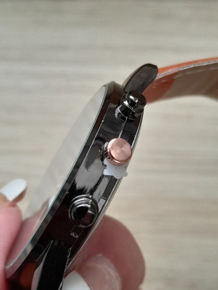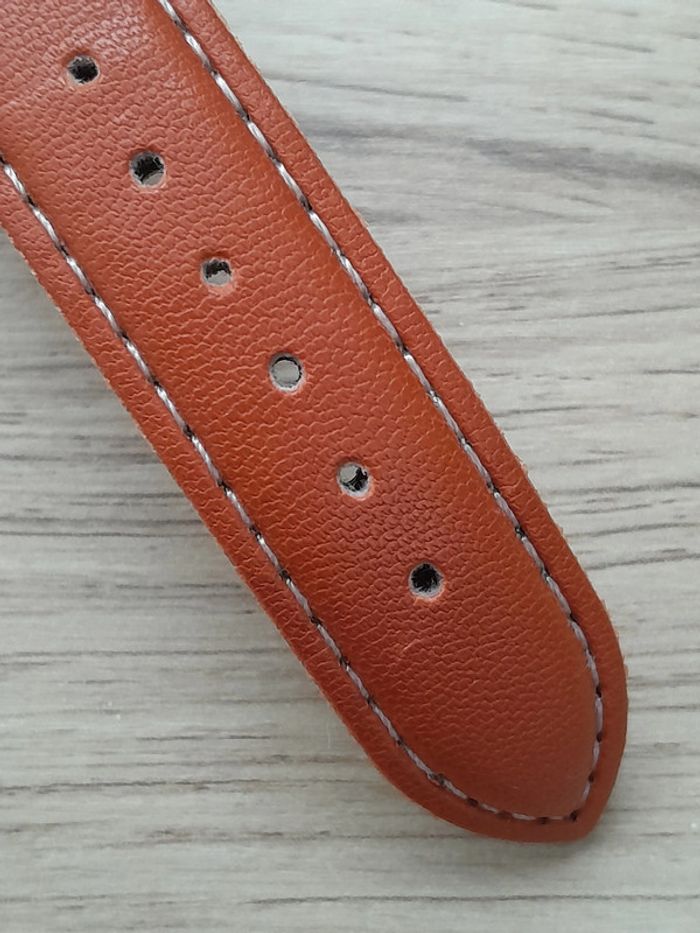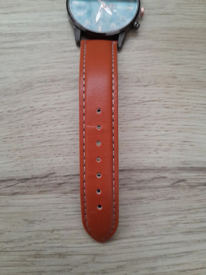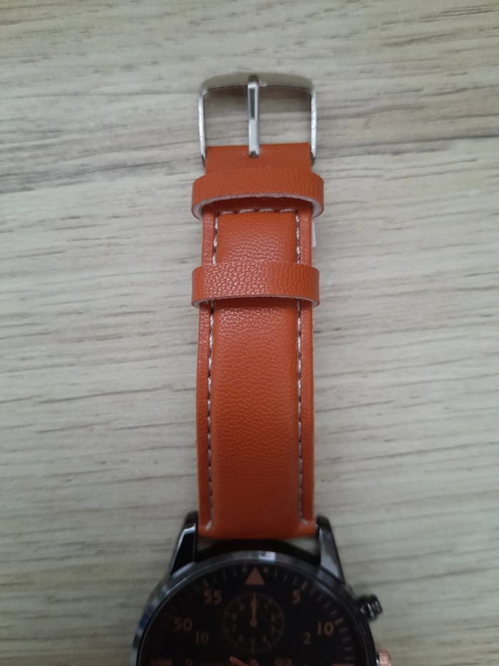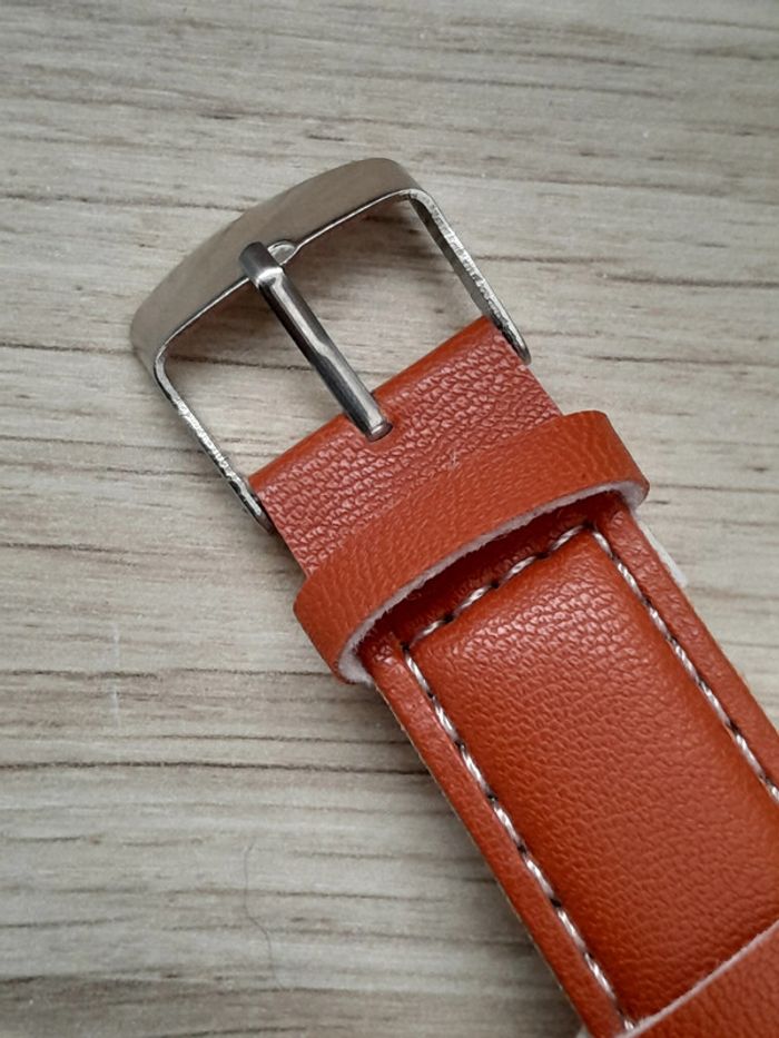 le bracelet est en simili cuir, couleur fauve