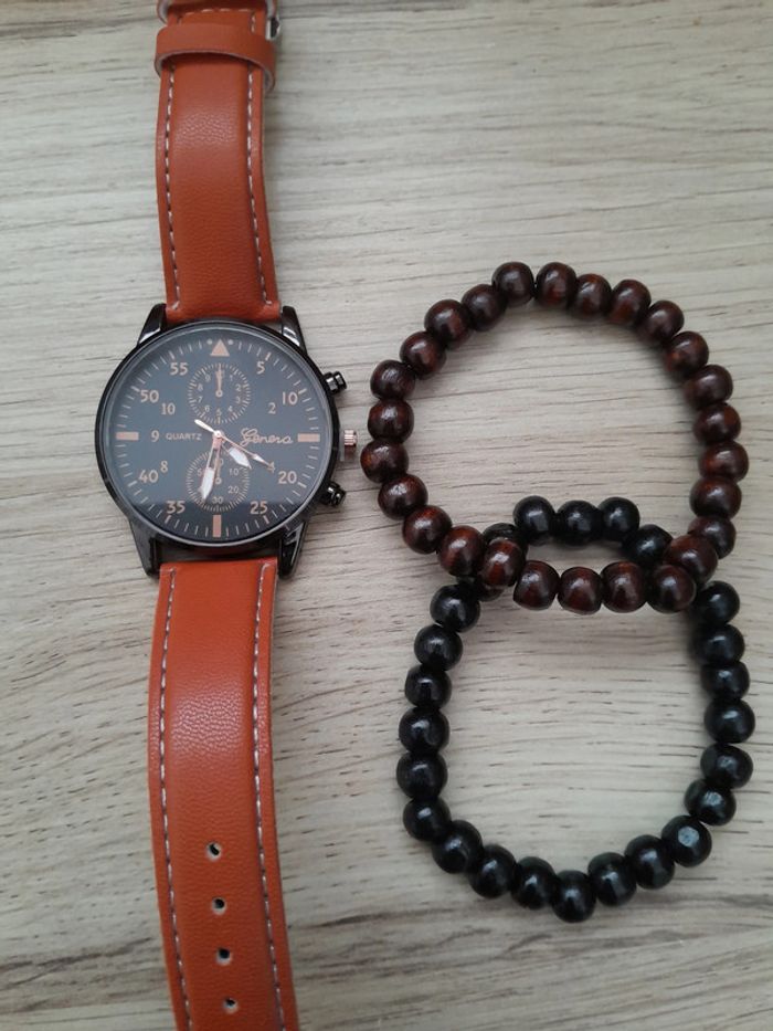 (2 bracelets offerts, 1 marron et 1 noir)
