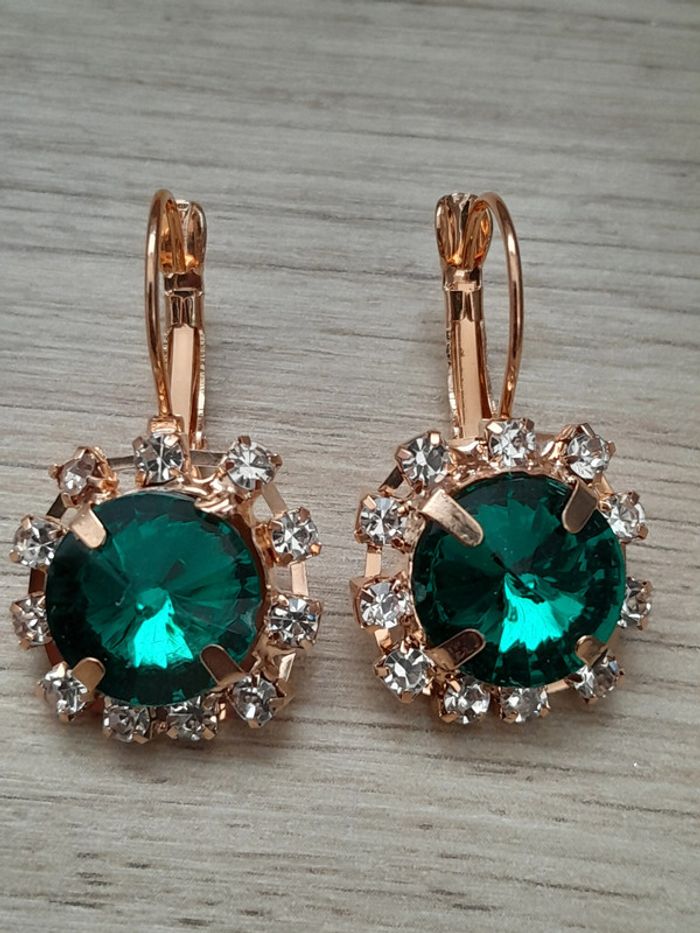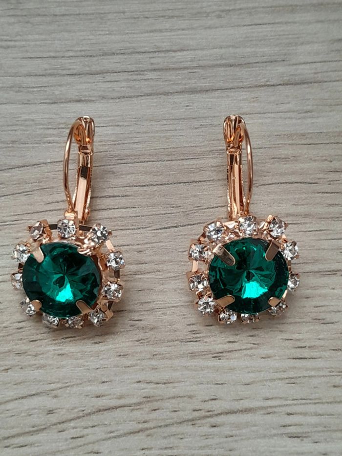Boucles d'oreilles vertes et dorées, avec strass - photo numéro 1
