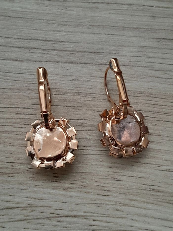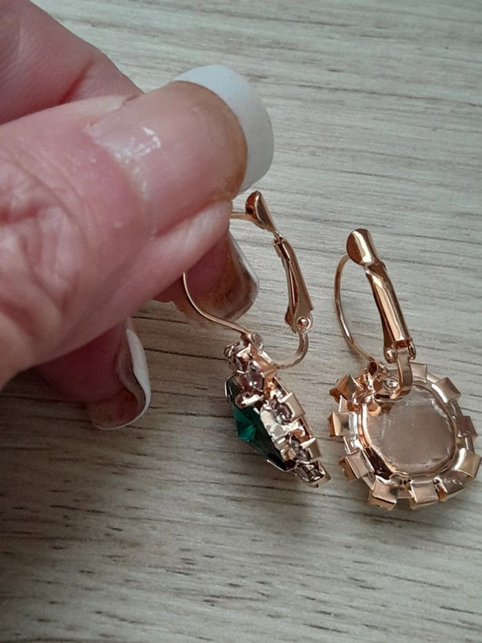 Boucles d'oreilles vertes et dorées, avec strass - photo numéro 5