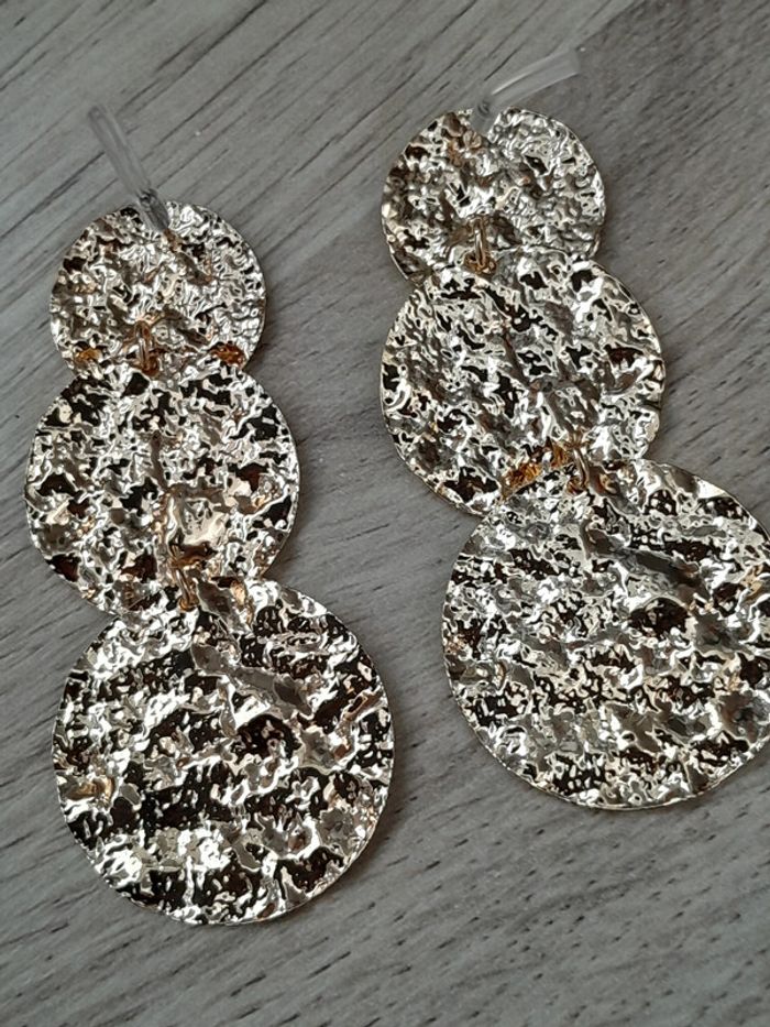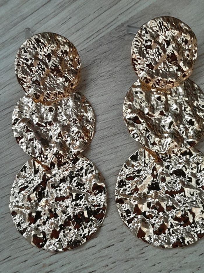 Superbes boucles d'oreilles, cercles, pendantes, dorées - photo numéro 3