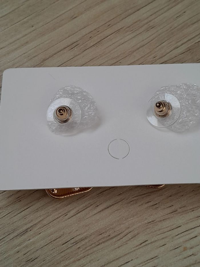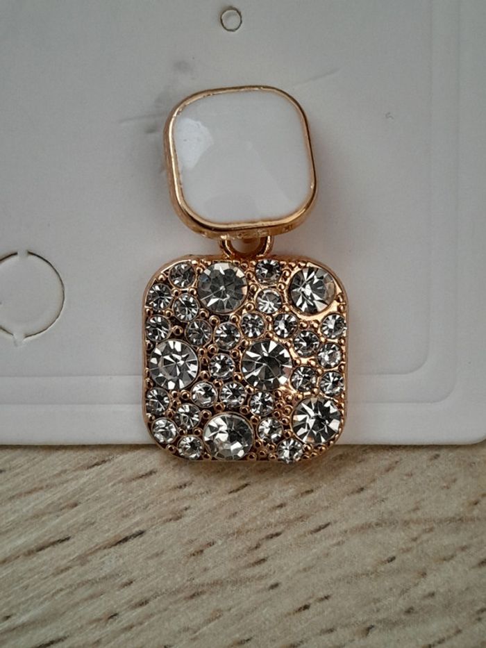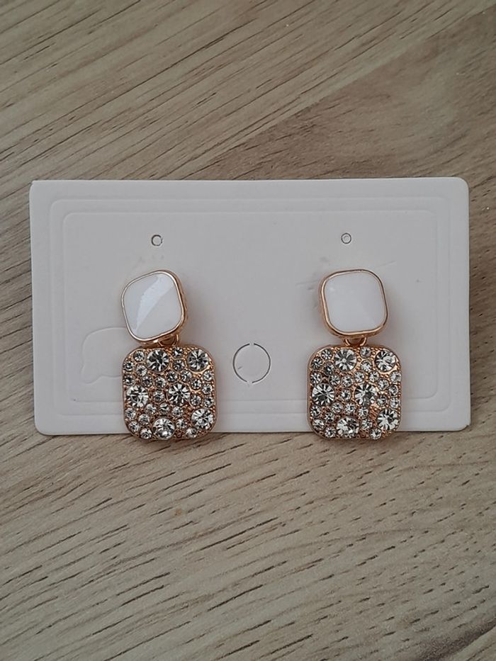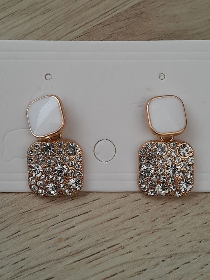 Boucles d'oreilles carrées pendantes, avec strass, dorées et couleur blanches hauteur : 2.4cmX1.3cm
