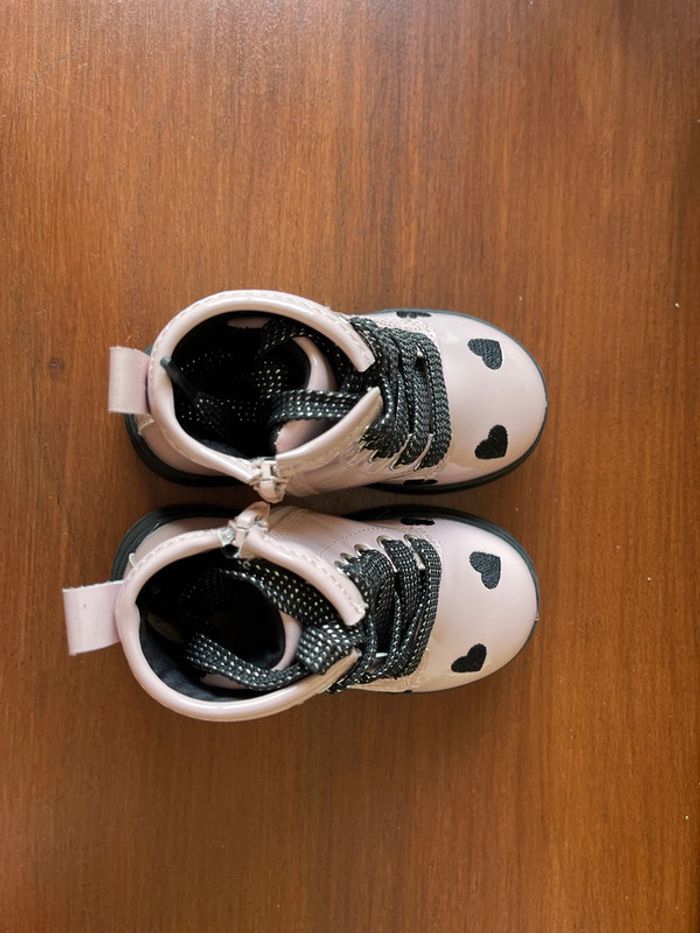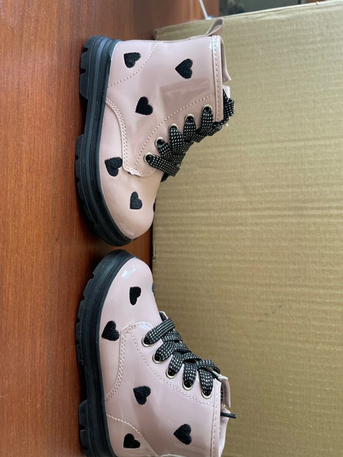 Bottines roses cœurs noirs La Halle fille excellent état taille 23 - photo numéro 2
