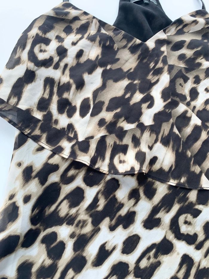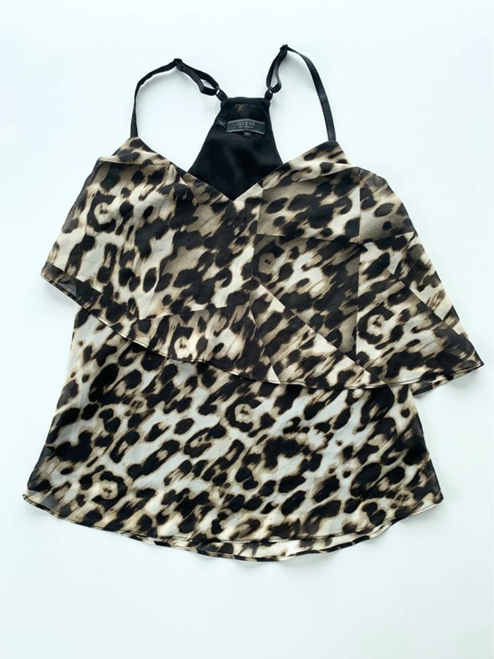 Très joli top à imprimé léopard de la marque GUESS, taille XS. Coupe fluide et légère avec un effet volanté sur le devant, parfait pour l’été ou une soirée. Bretelles fines réglables, matière confortable et agréable à porter. 🖤 En excellent état, porté une seule fois. 🎯 Idéal avec un jean, un short ou une jupe pour un look chic et tendance.