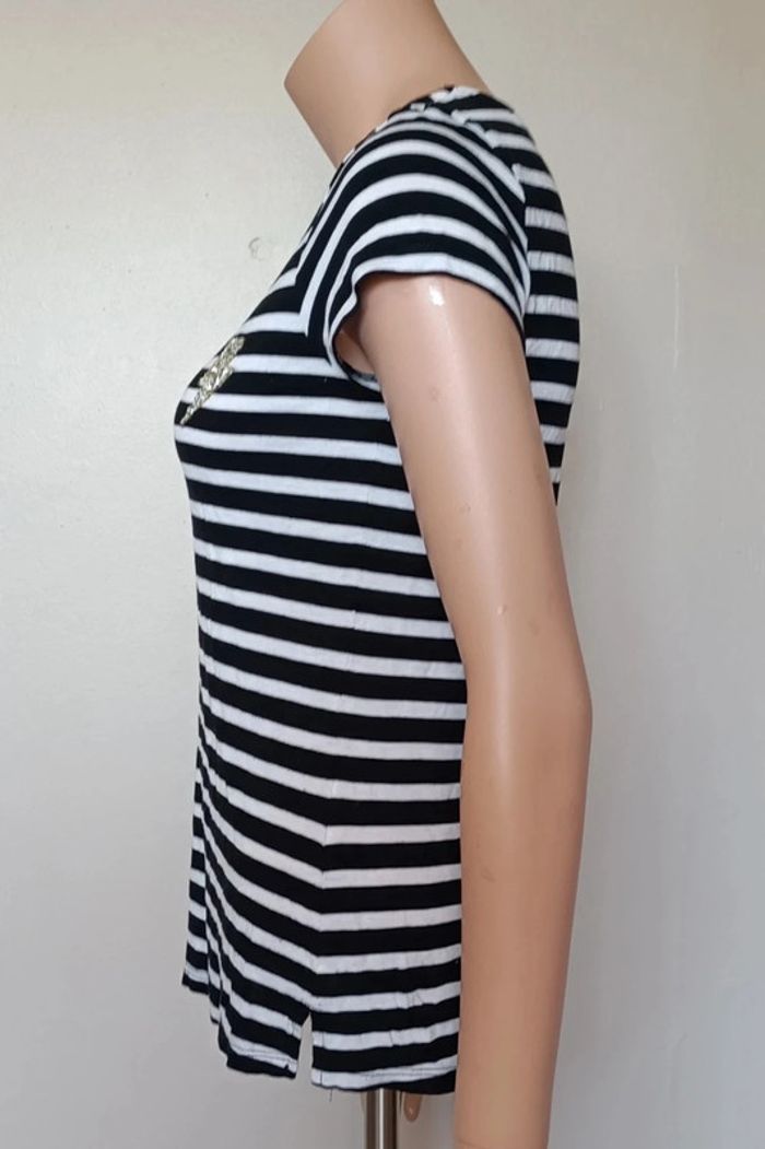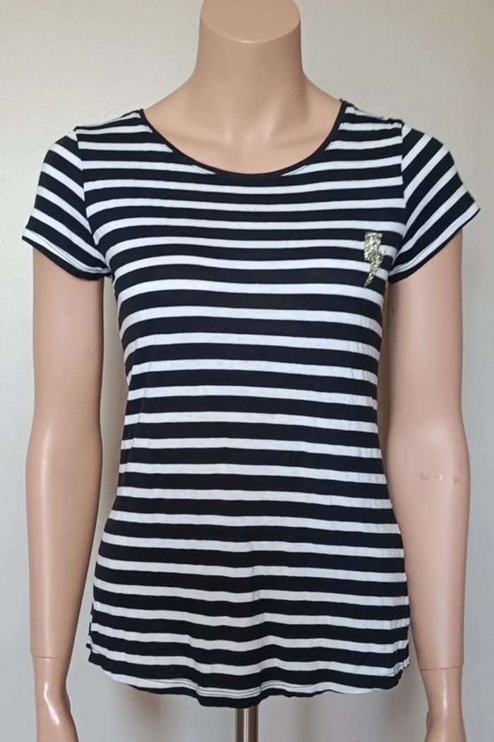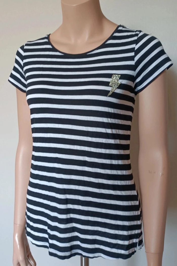 📄 tee-shirt à manches courtes et col rond évasé blanc uni rayé noir style marin avec éclair en sequin strass blanc argenté sur un côté de la poitrine, petites fentes sur les hanches matière agréable et extensible correspond à un 38 🌡️ fin printemps - été - début automne ⚠️​ reste étiquette colo sur l'étiquette de marque ​🖱️ Tous les vêtements de cette taille #leadie91femme38 ---------------------------------- 🔍 Pour faciliter vos recherches #️⃣ dressing trié par # (voir mon profil) 🎛️ #leadie91dressing et filtrez vos recherches ---------------------------------- 🗄️ En vente dans mon dressing : vêtements & accessoires femme, homme, adolescente, adolescent, fille, garçon et bébé, sacs, bijoux, produits hygiène et beauté, livres, jeux, jouets, fournitures scolaires, CD / DVD, vaisselle, décoration, rangement, linge de maison... ---------------------------------- 💸 Prix raisonnables 💸💸 Réductions lot 📍 Ballancourt-sur-Essonne pour RDV 🛒 Bon shopping ~ #leadie91 ♻️ 📝 Mots clés annonce site seconde main état description couleur composition tissu taille marque saison idée défaut y2k t-shirt breton rayure bande trait remise main propre 08 membre GentleVinties 24