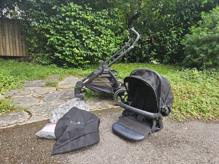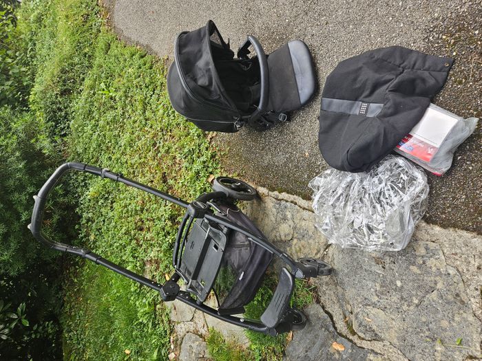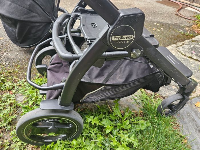 Pack complet : - Chassis Peg Perego Book 51 Rock Black/Silver - Nacelle Peg Perego Elite Rock Black - Assise Peg Perego Pop Up Rock Black - Peg Perego Habillage de Pluie pour Poussette - Moustiquaire Peg Perego pour poussette (neuve, jamais servi), - Chancelière chaude pour les jambes. Quelques traces d'usage. A servi pour un enfant.