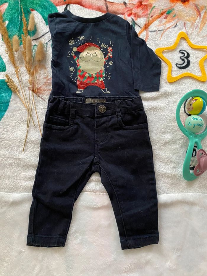 T-shirt de couleurs marine thème père noël de chez Gémo avec jeans noir de chez Primark Pas de tâches ni de trous, très bon état. #gwladys77390_3mois_filles #gwladys77390_3mois_garcons Les lots sont désormais possibles, la réduction de -30% est activée ! Sauf pour certains articles ⚠️ #ensemble3mois #coton3mois #3mois #gemo #primark #tbe #lot #baby3months #mode #moderne #tendance #noel #perenoel
