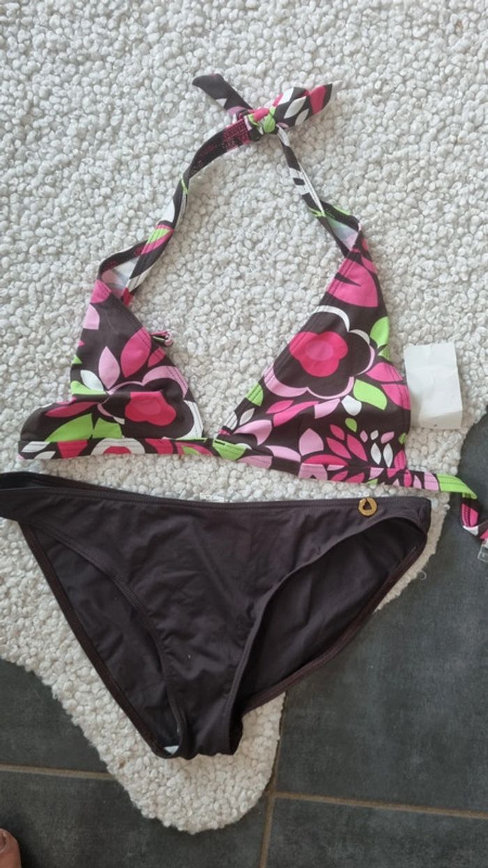 Maillot de bain neuf 2 pièces bas MORGAN 44 et haut jaune et multi colors - photo numéro 10