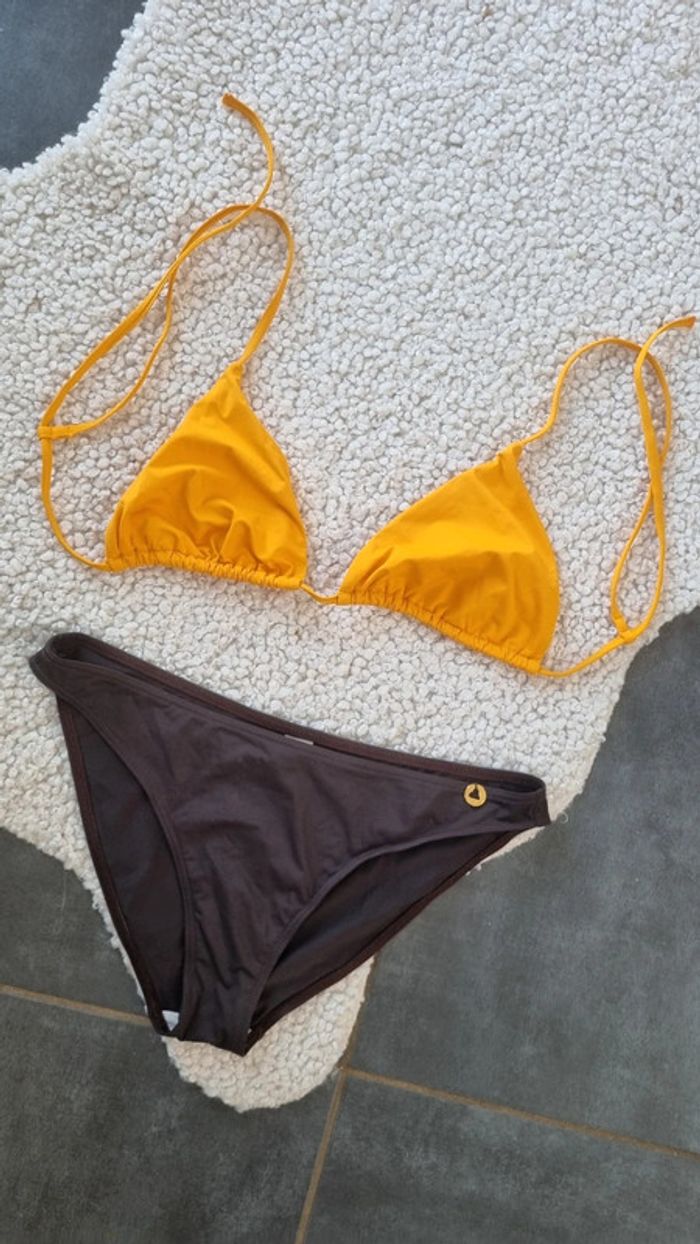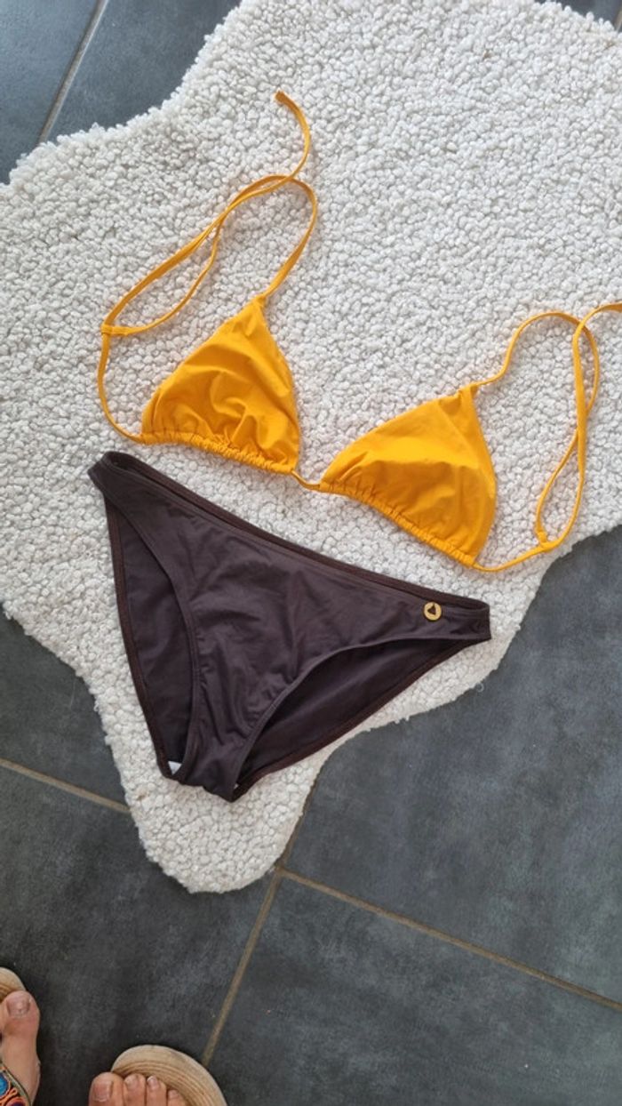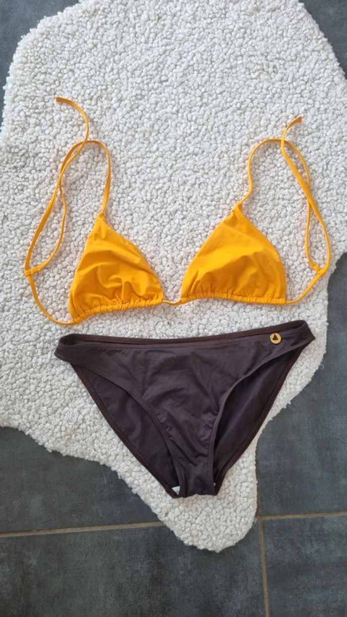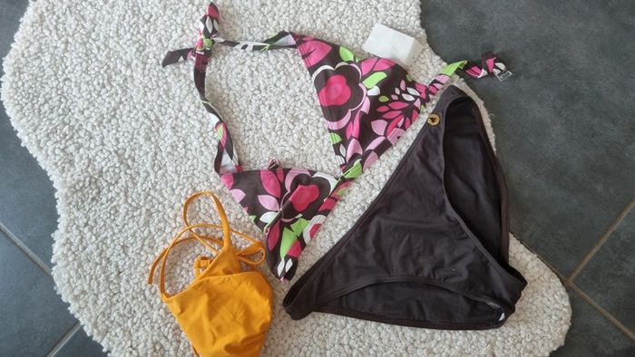 Un maillot de bain neuf Le bas est un Morgan marron neuf 44 Et haut sans marque neuf également , jaune légèrement moutarde et un autre haut neuf marque Galerie Lafayette 😊😉 Donc 3 pieces 😁😍 🌸Envoi rapide , avec les transporteurs choisi ici , emballage soigné & recyclé ♻️ si possible , n'hésitez pas à poser vos questions si doute sur l'article 😉😁 Remise en main propre, en RP sur Ponthierry 77, et à proximité suivant mes déplacements 😁😍😜 excellente journée Mot clef 🥰 : Zara zapa camaïeu kiabi caroll 123 hollister Esprit uniqlo lafayette nike Adidas Stan Smith geox Gautier maison du monde