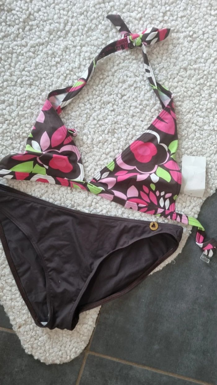 Maillot de bain neuf 2 pièces bas MORGAN 44 et haut jaune et multi colors - photo numéro 3