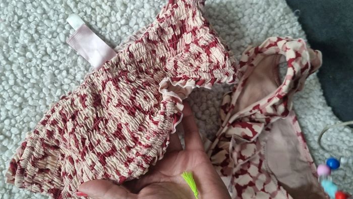 Maillot de bain 2 pieces xs 34 36 beige rouge  sympa avec le haut bandeau 🥰 - photo numéro 4