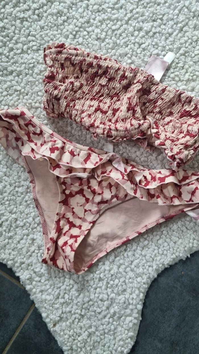 Maillot de bain 2 pieces xs 34 36 beige rouge  sympa avec le haut bandeau 🥰 - photo numéro 2