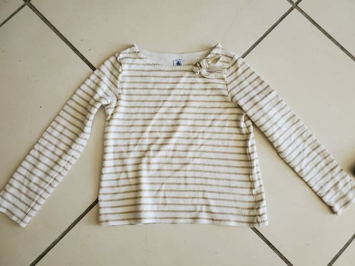 Jolie marinière de la marque petit bateau taille 8 ans .Les rayures sont dorées pailletées . Pour voir tout mon 8 ans tapez dans la barre de recherche #8ansfillelili29217