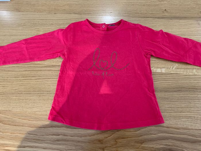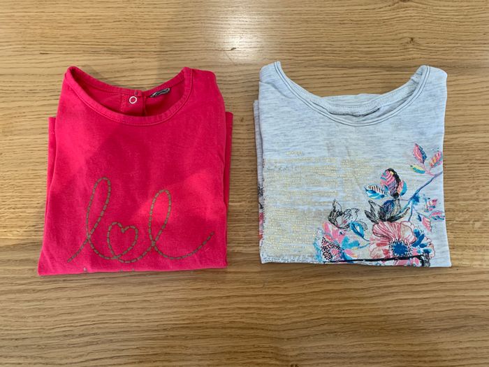 Lot comprenant 2 T-shirts manches longues : . un rose framboise, imprimé « Lol » de marque Z . & un gris, de marque Mexx.